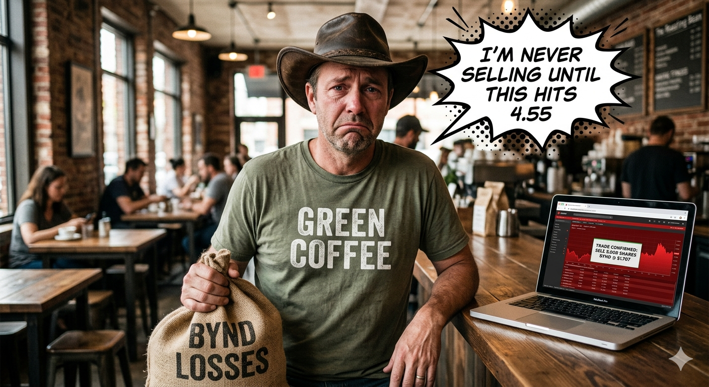 So Green Coffee \- one of the biggest baggies and loudest mouths \- spent months saying he'll never sell and anyone doing so is weak\. He told everyone he was extremely bullish because of the turnaround plan\. That drinks and fake meat are the future and holding long will reward billionaire wealth\. Then at the first small pump above 1 dollar he dumps his bags on a bunch of clueless newbies, lol\. Paper hands\!...